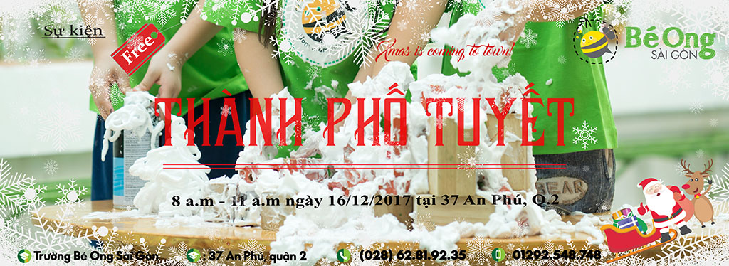 Vào ngày thứ 7 (16/12) sắp tới, Bé Ong Sài Gòn mang đến cho ba mẹ và các con cơ hội trải nghiệm lễ Giáng Sinh sớm với không gian ngập tràn màu trắng tinh khôi của đồi tuyết, cây thông Noel cùng những bông tuyết tung bay trong gió qua sự kiện “THÀNH PHỐ TUYẾT”.